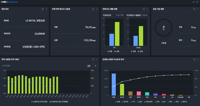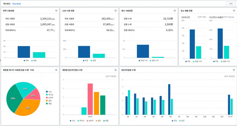 페이지 정보 FEMS DASHBOARD 목록 본문 사용하는 에너지원 전력 용수 LNG등의 모니터링을 한페이지에 모아 놓은 DASHBOARD입니다. 이 페이지에서는 전체적인 에너지 사용량을 파악함과 동시에 탄소배출량등을 확인 하실 수 있습니다. 이전글전력흐름도 24.10.26
